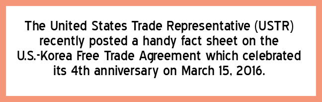 2015 Fact Sheet >> https://ustr.gov/about-us/policy-offices/press-office/fact-sheets/2015/march/fact-sheet-us-korea-free-trade-agreement